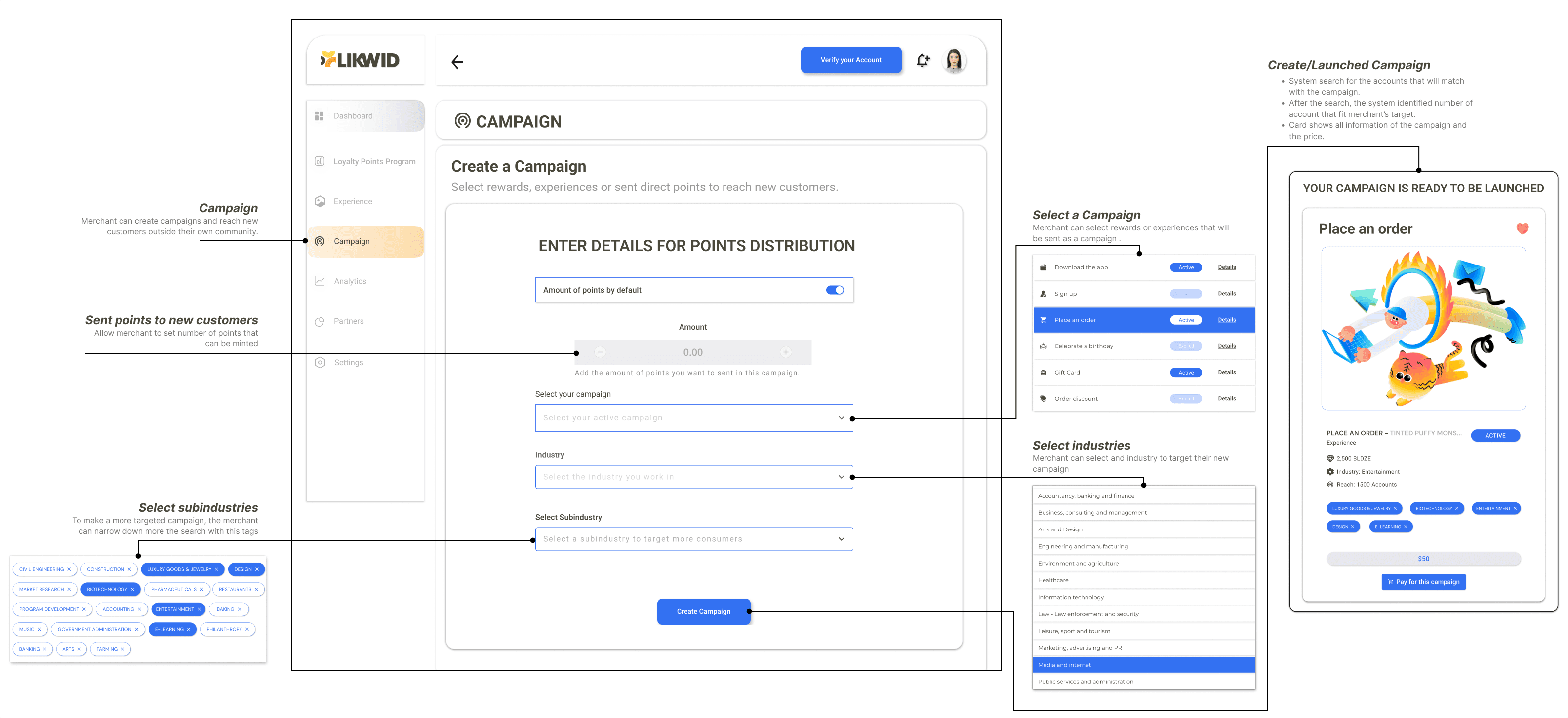 Essentially, we want to help the two user groups perform their tasks efficiently and easily. Merchants should be able to create and launch a campaign without obstacles while facilitating this process effectively, and customers should be able to redeem their points as easily as possible.