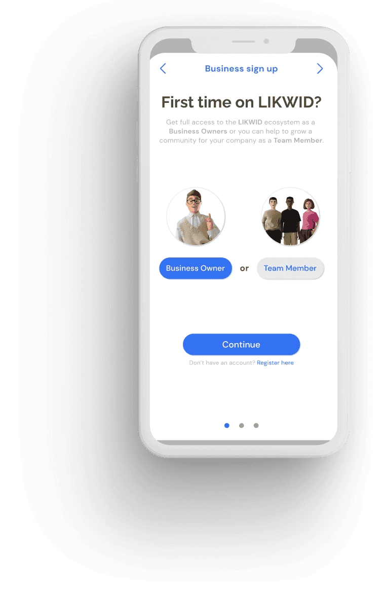 The sign-up process for merchant wasn’t clear. The confusion came because merchant has two options to create his account: create an account as a business owner (full access of the LIKWID platform) or create an account as a team member (full access for the local app). With this iteration, I make sure to create a clear distinction during the account sign-up process using illustrations.