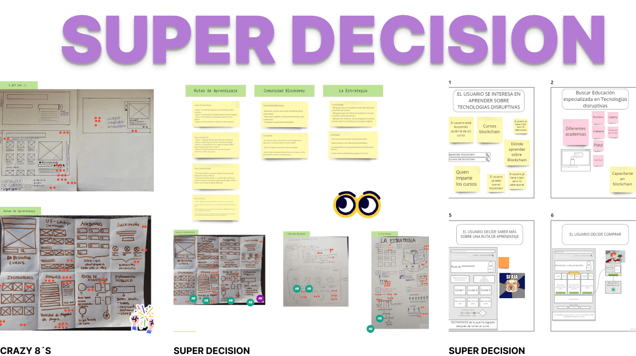 The circumstances surrounding this Sprint were quite unique. Not only was it the first Design Sprint of Blokdemy, but it was also done completely remotely. Thanks to the fact that one of the advantages of remote work is the access to tools that can be explored and used to make this kind of work easier for us, in our case 'Miro', was an excellent ally in the whiteboarding process and the results were seen in the constant participation of the team.